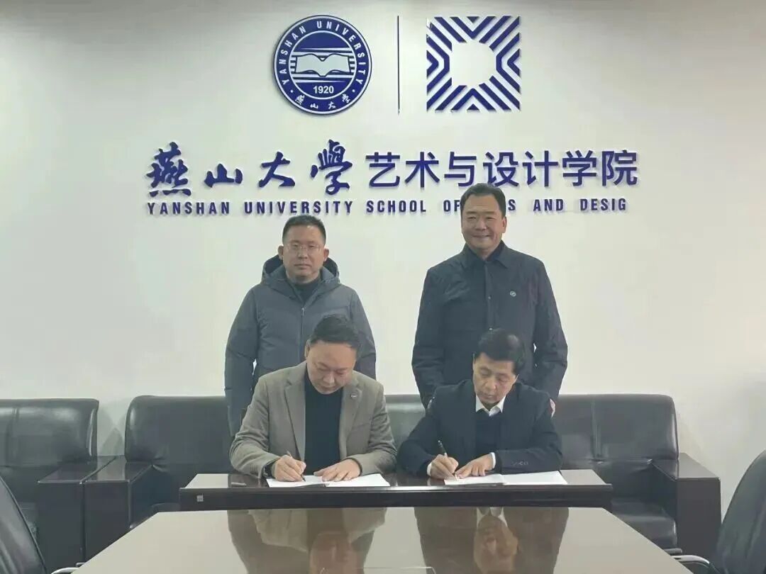 燕山大学艺术与设计学校赵琳院长与北京艺术天成书画院杨文超院长签署了校企合作合作协议书,燕山大学艺术与设计学校书记张文超见证了这一历史时刻。