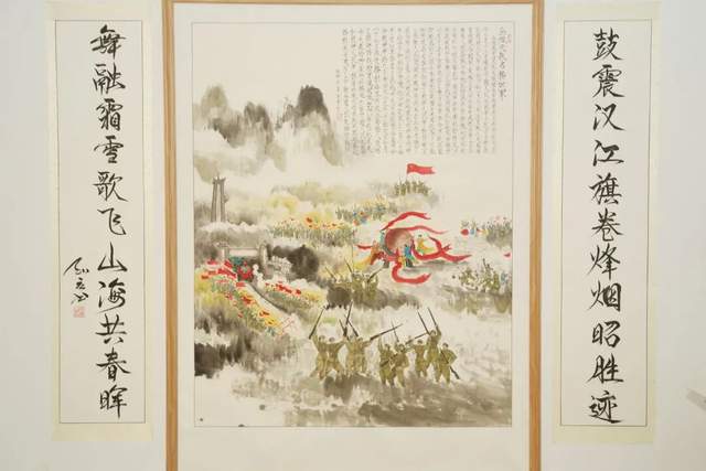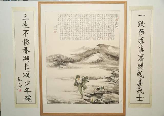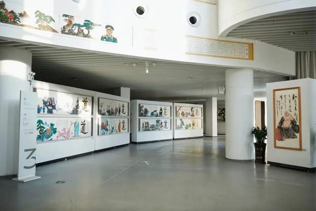 本次展览精心策划“道法自然”“伟业新篇”“铁血丰碑”“水墨千秋”“般若之光”五大板块,既独立成韵又脉络相连,构成一幅立体的文化长卷。“道法自然”板块中,笔墨间流淌着老子哲学的深邃,勾勒出东方宇宙观的空灵意境;“伟业新篇”以时代笔触回望中国道路的探索光辉,传递出昂扬向上的时代气息;“铁血丰碑”通过书画艺术铭刻抗美援朝精神,致敬坚贞不屈的民族气节;“水墨千秋”在山水花鸟间延续文人意趣,让传统美学在当代焕发生机;“般若之光”则绘写佛教中国化的慈悲智慧,为观者照见心灵净土。